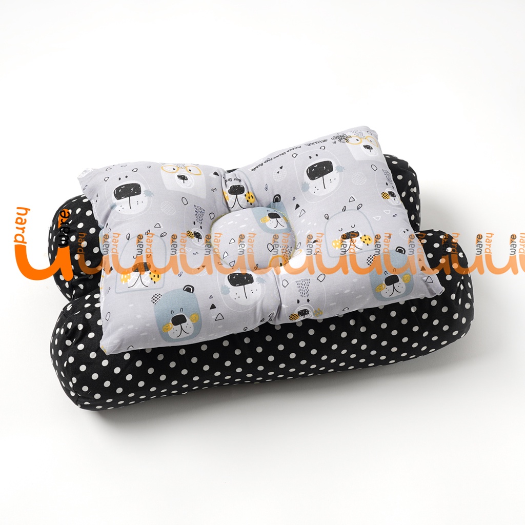 Bantal Guling Bayi Anti Peyang - 3 in1 Set Perlengkapan Tidur Bayi New Bantal Bayi - Bantal Peyang dan Guling Bayi - PKG Bantal Bayi - Bantal Bayi Set Guling bayi New Bron Motif kian Halus