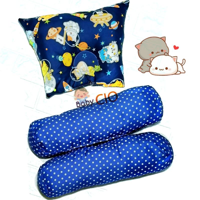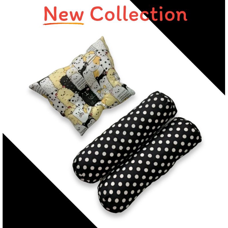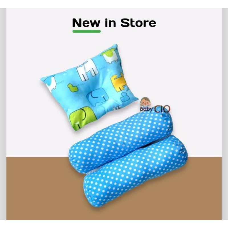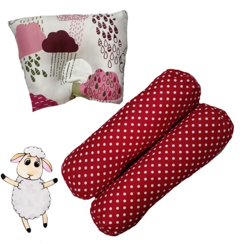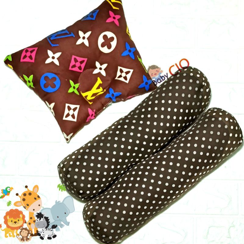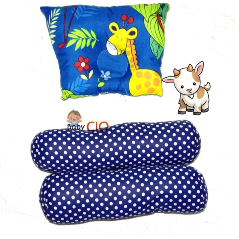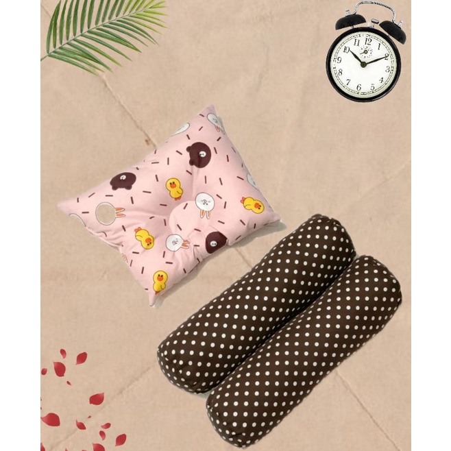 Bantal Guling Bayi Anti Peyang - 3 in1 Set Perlengkapan Tidur Bayi New Bantal Bayi - Bantal Peyang dan Guling Bayi - PKG Bantal Bayi - Bantal Bayi Set Guling bayi New Bron Motif kian Halus