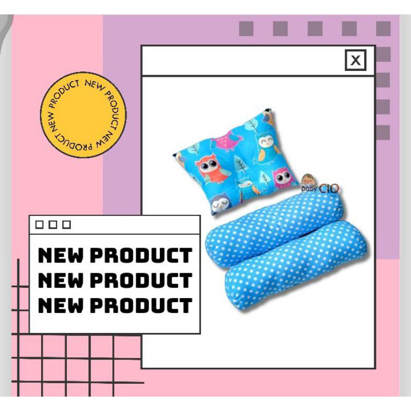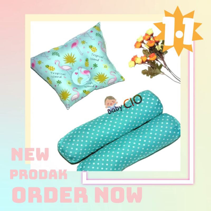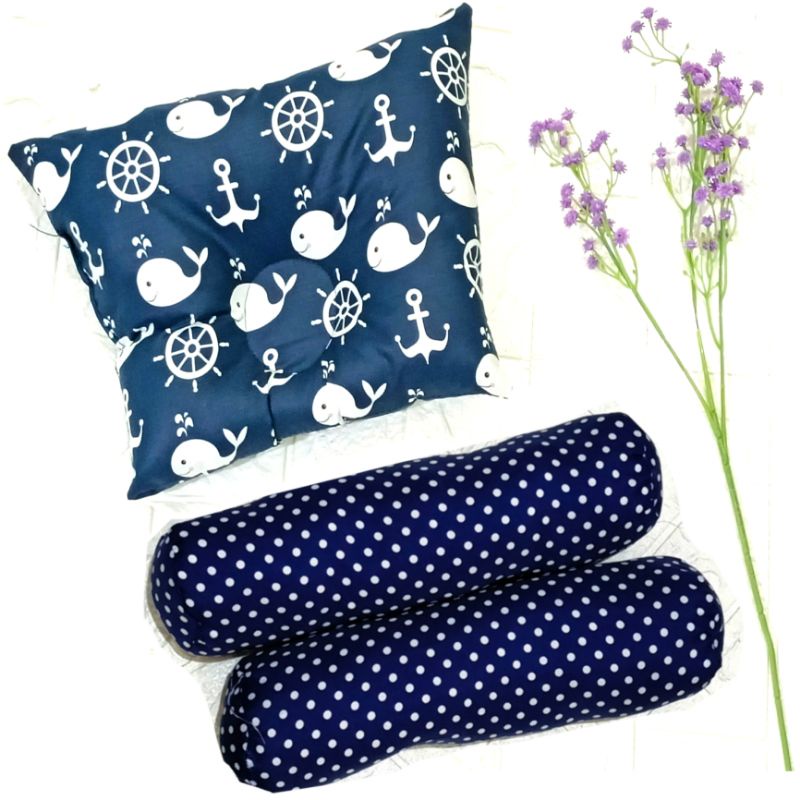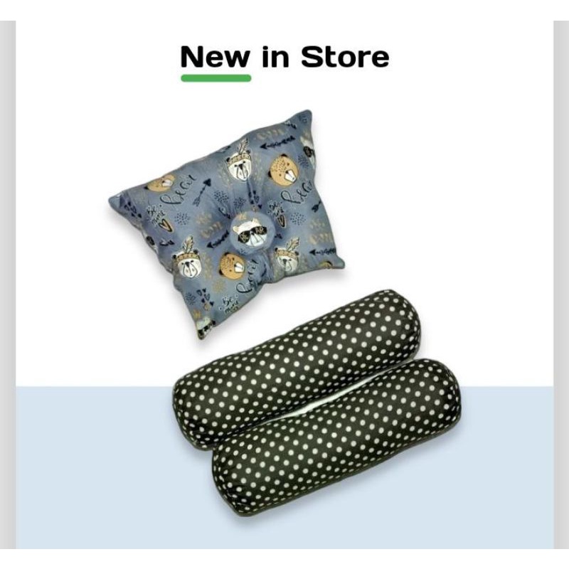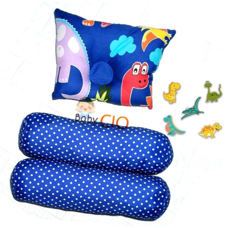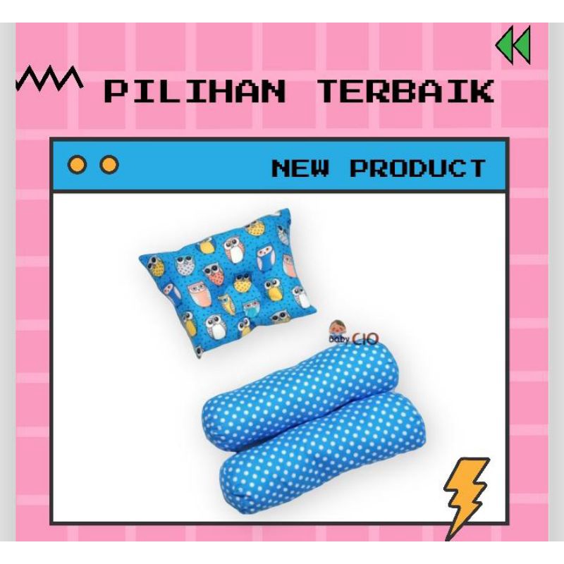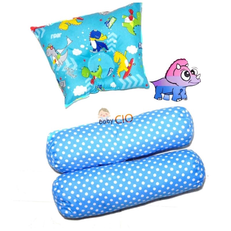 Bantal Guling Bayi Anti Peyang - 3 in1 Set Perlengkapan Tidur Bayi New Bantal Bayi - Bantal Peyang dan Guling Bayi - PKG Bantal Bayi - Bantal Bayi Set Guling bayi New Bron Motif kian Halus