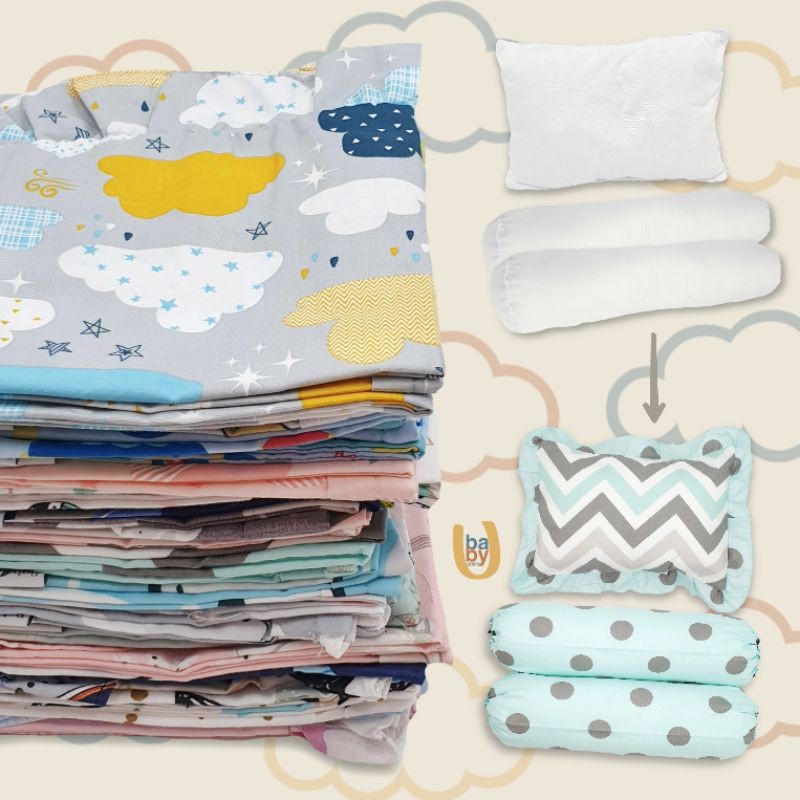 Bantal Guling Set Bayi 1 Bantal 2 Guling Anti Peyang Motif Newborn Baru Lahir Murah Sarung Guling Dapat Dicuci Dan Diganti